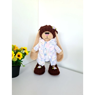 A funny little bunny with a round nose and a mischievous smile. He's so soft, cheerful, and bright!