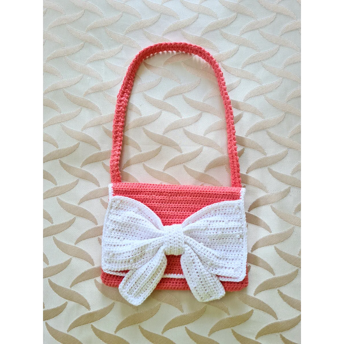 The soft coral-pink body is complemented by a large white bow, delicately decorated with shimmering beads that add a subtle sparkle to every movement. Its long strap allows it to be worn comfortably over the shoulder or carried gracefully on the arm — ideal for parties, walks, or special outings.